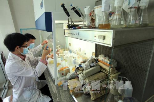 Kiểm tra vi sinh vật tổng số hàng hóa tại tại Trung tâm chiếu xạ Hà Nội. Ảnh: Anh Tuấn/TTXVN