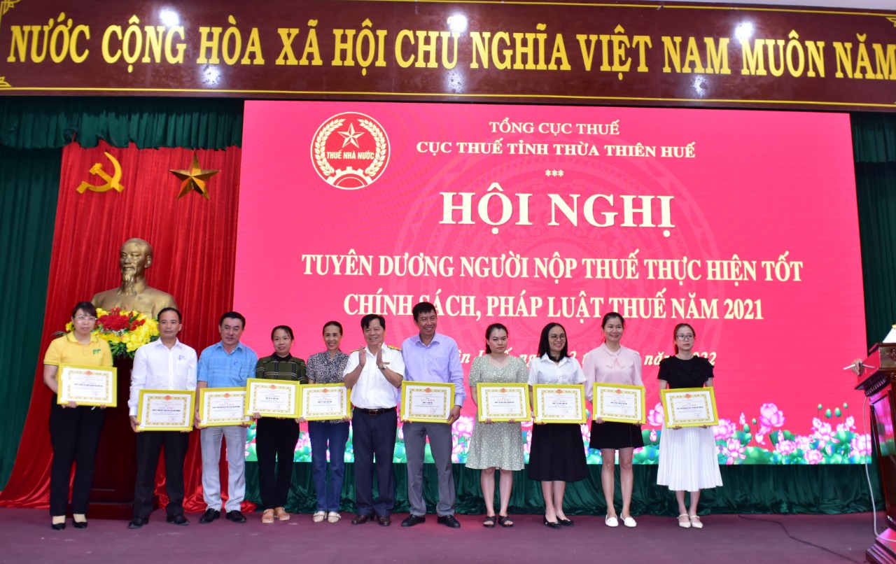 Và để ghi nhận, tôn vinh thành tích hoàn thành xuất sắc nghĩa vụ nộp thuế của các tổ chức, cá nhân Cục Thuế tỉnh đã xét chọn tổ chức và cá nhân điển hình tiên tiến để khen thưởng. Trong đó, 3 đơn vị được Tổng Cục Thuế tặng giấy khen và 50 tổ chức cá nhân thuộc Cục Thuế tỉnh quản lý được Cục Thuế tỉnh tặng giấy khen. Đây là các DN, doanh nhân đã phát huy khả năng sáng tạo vượt qua khó khăn để duy trì sản xuất kinh doanh, đóng góp vào ngân sách Nhà nước. Và là những hạt nhân điển hình tiên tiến đại diện cho các tổ chức cá nhân NNT trên địa bàn.