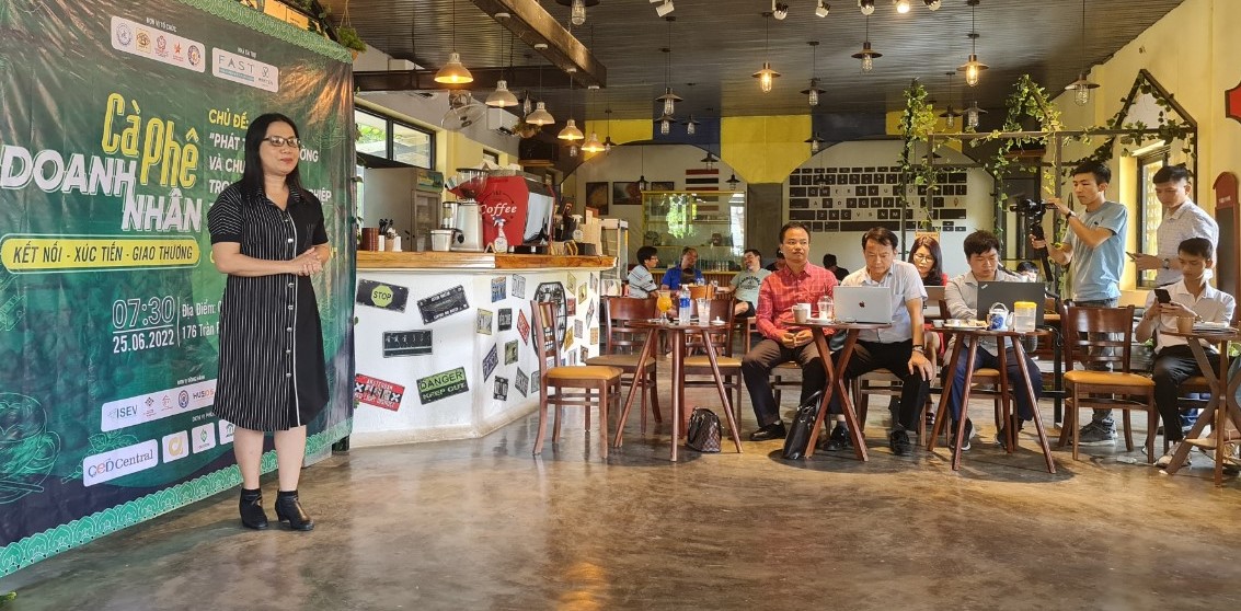 HNN.VN - Ngày 25/6, Hội Doanh nhân trẻ tỉnh phối hợp với Trường cao đẳng nghề Công nghệ cao Hà Nội và Câu lạc bộ xúc tiến thương mại và đầu tư doanh nhân trẻ Việt Nam tổ chức chương trình “Cà phê doanh nhân” với sự tham gia của nhiều doanh nghiệp trong và ngoài tỉnh.