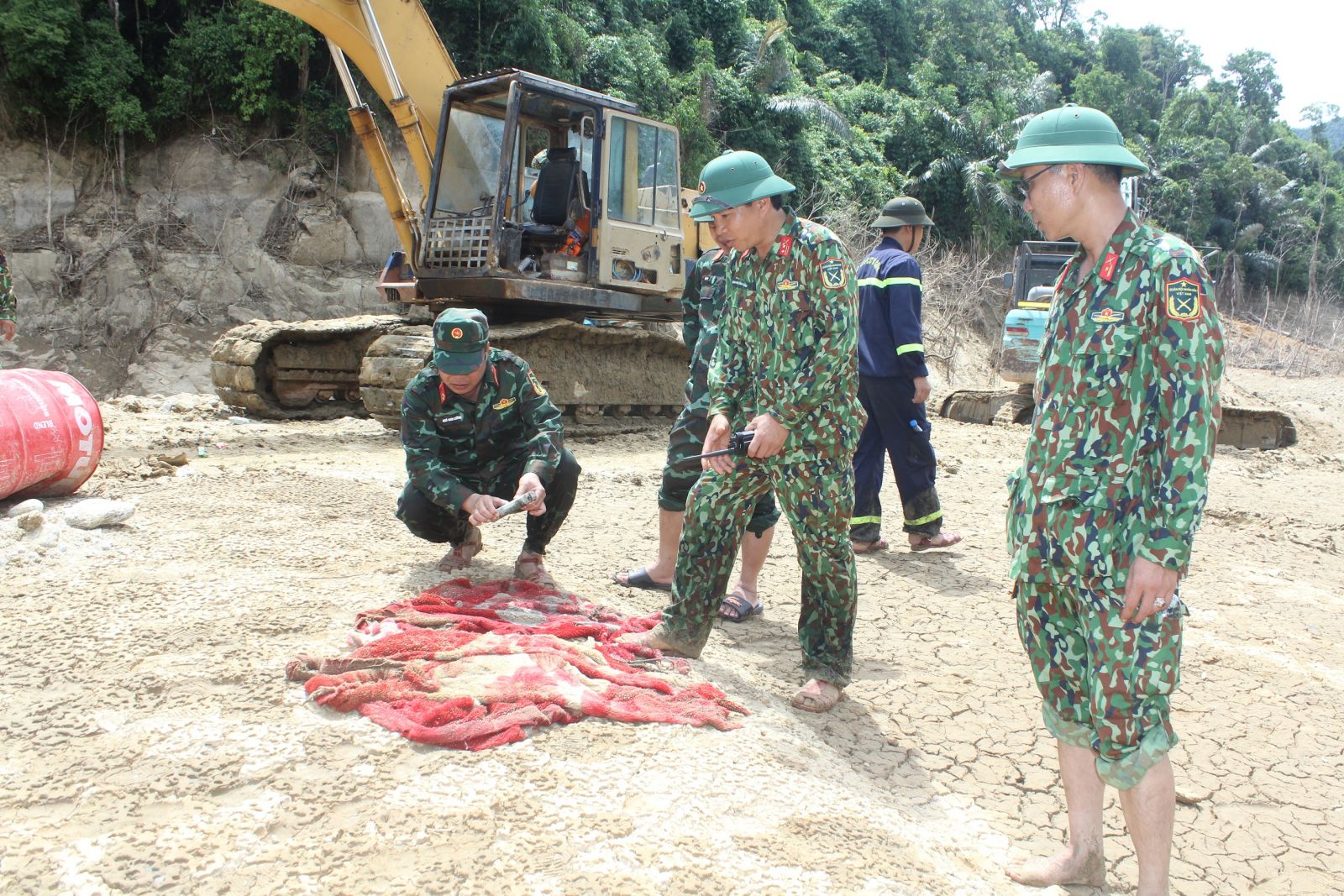 Do bãi bồi tìm kiếm trải dài dọc theo sông Rào Trăng vì vậy các lực lượng đã chia thành nhiều tốp để tiến hành thi công. Các cán bộ, chiến sĩ cũng được bố trí ở nhiều vị trí để có thể quan sát một cách kỹ lưỡng những hoạt động của máy múc nhằm không bỏ sót một tín hiệu nào trong quá trình tìm kiếm.