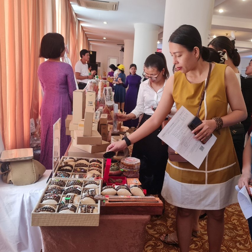 | Các doanh nghiệp do phụ nữ làm chủ trưng bày giới thiệu sản phẩm tại hội thảo |