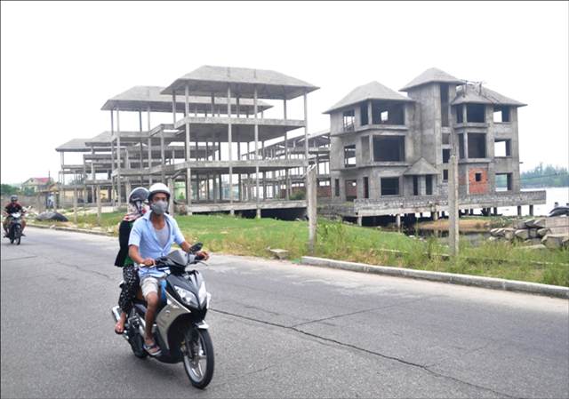Một trong những DA ven biển “treo” lâu năm nhất phải kể đến là DA Khu du lịch Xanh Lăng Cô ở thị trấn Lăng Cô (Phú Lộc). Năm 2004, UBND tỉnh cấp giấy chứng nhận đầu tư cho DA Khu du lịch Xanh Lăng Cô với diện tích hơn 6,3 ha; chủ đầu tư là Tổng Công ty cổ phần xây dựng Điện Việt Nam- VNECO. Đây là khu đất có vị trí đắc địa, vừa nằm ngay cạnh bãi biển Lăng Cô vừa nằm ngay trên tuyến Quốc lộ 1A qua địa bàn huyện Phú Lộc. Công trình có tổng mức đầu tư gần 169 tỷ đồng, đạt tiêu chuẩn 4 sao. Thời điểm khởi công, nhà đầu tư cho biết, công trình có nhiều hạng mục như: nhà đón tiếp, nhà Bungalow, nhà vườn Vip, nhà vườn loại 1-2-3 phòng, nhà hàng 840 chỗ, hội trường… Dự kiến, công trình hoàn thành và đưa vào khai thác vào quý 4 năm 2008. Vậy mà, đến thời điểm này công trình chỉ xây xong bức tường.