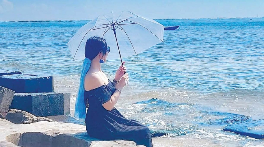 | Du khách tham quan, check-in tại biển Hải Dương |