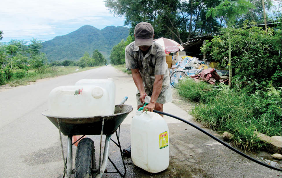 Về mùa khô hạn, người dân một số khu vực ở Phú Lộc vẫn phải đi mua nước