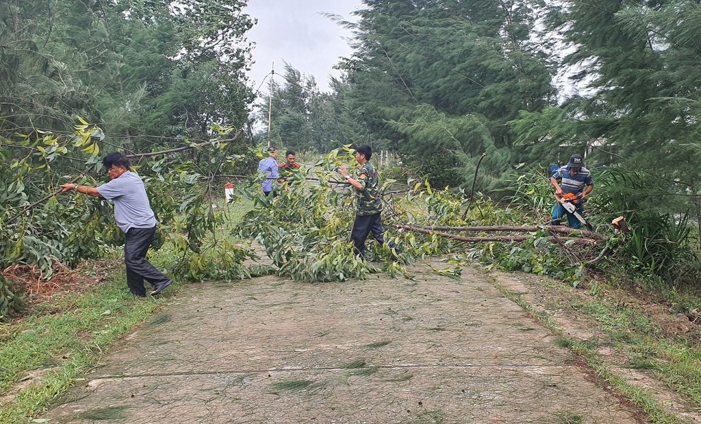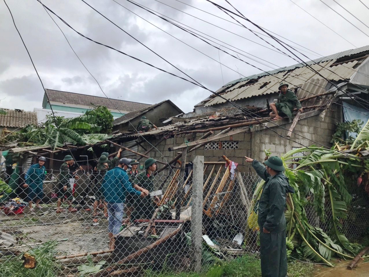 Bộ Chỉ huy Quân sự (CHQS) tỉnh huy động hàng trăm cán bộ, chiến sĩ bộ đội thường trực và hàng ngàn chiến sĩ dân quân tại các địa phương khẩn trương khắc phục hậu quả của bão số 4.