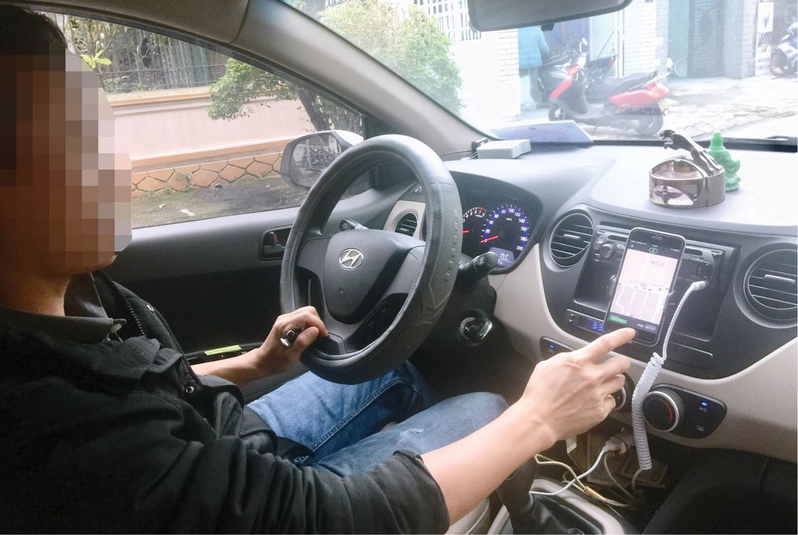 Tài xế xe Grab giới thiệu ứng dụng Grab đến khách hàng