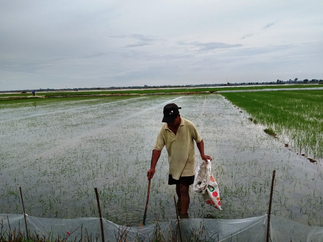 Xứ đồng Mỹ Xá là vùng thấp trũng của xã Quảng An. Mưa lớn đã làm 50 ha lúa khu vực này ngập trắng, nguy cơ ảnh hưởng sinh trưởng cây lúa cũng như năng suất sau này. Nhiều nông dân cho biết, tình trạng ngập úng lúa non không chỉ gây chết lúa mà còn tạo điều kiện ẩm thấp cho ốc bưu vàng phát triển cắn phá lúa. Do vậy, từ sáng 5/6, bên cạnh huy động máy bơm tiêu úng kịp thời, nông dân đồng loạt ra đồng dùng biện pháp thủ công để bắt ốc bưu vàng “cứu” lúa.