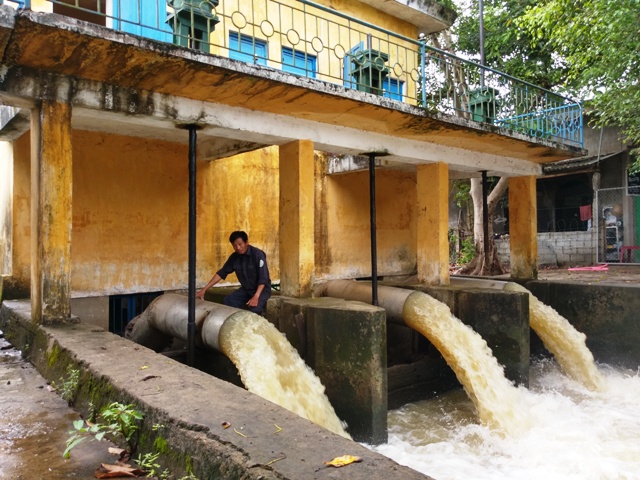 Trạm bơm Hương Vinh đang phát huy hết công suất để tiêu úng cứu lúa