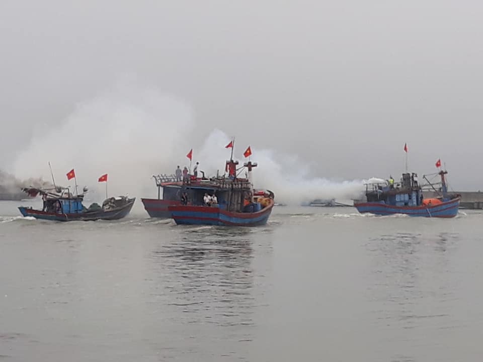 Người dân xã Phú Hải tham dự buổi lễ ra quân, tiễn hơn 40 tàu ra quân đánh bắt