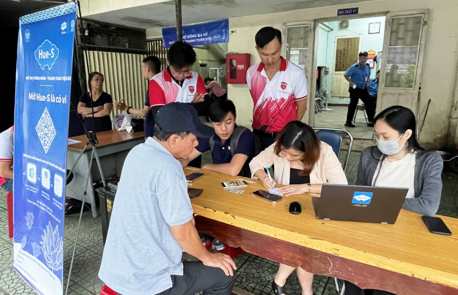Lực lượng tình nguyện viên hướng dẫn người dân cài đặt Ví điện tử