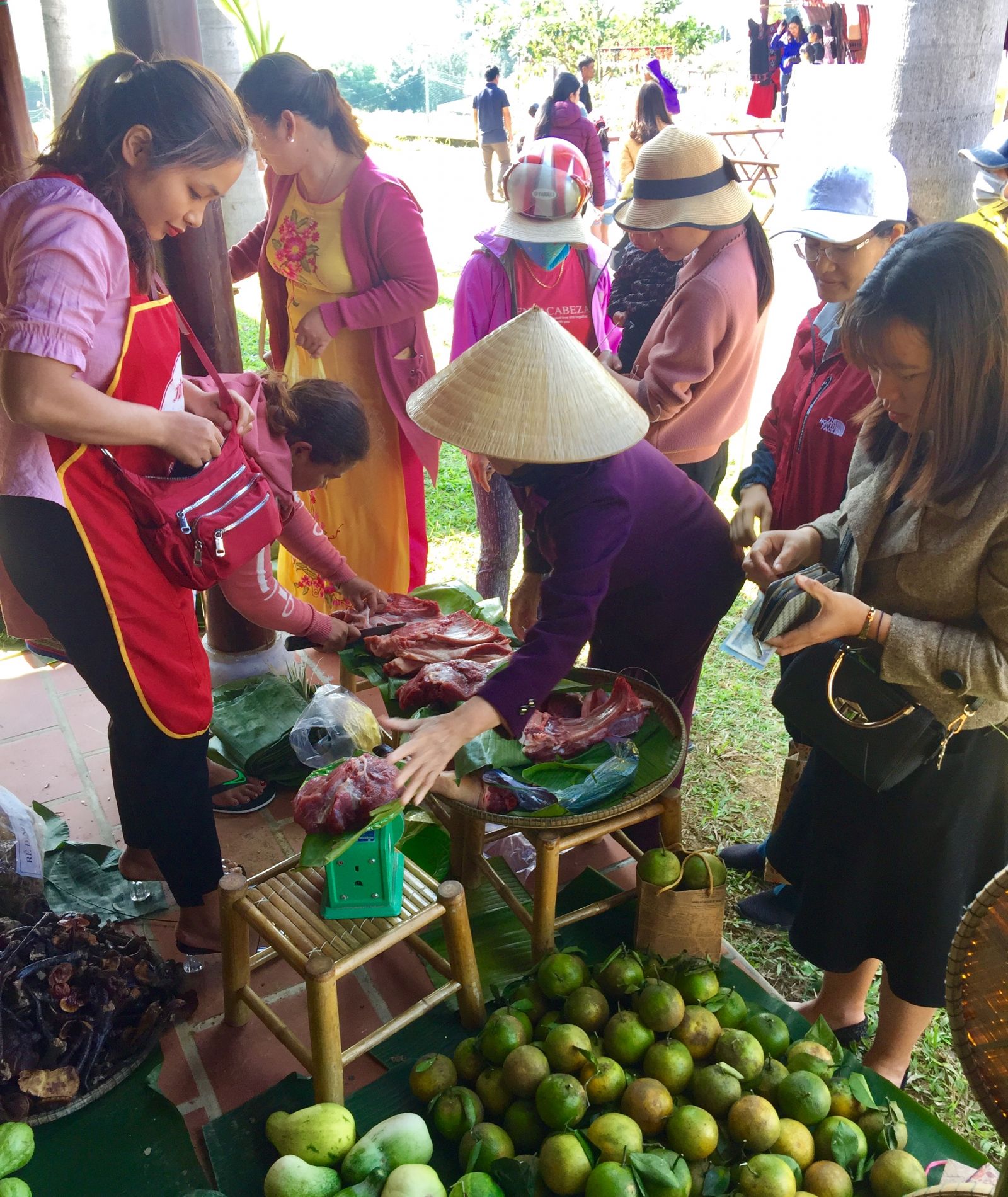 Một gian hàng bán thịt heo bản tấp nập người mua