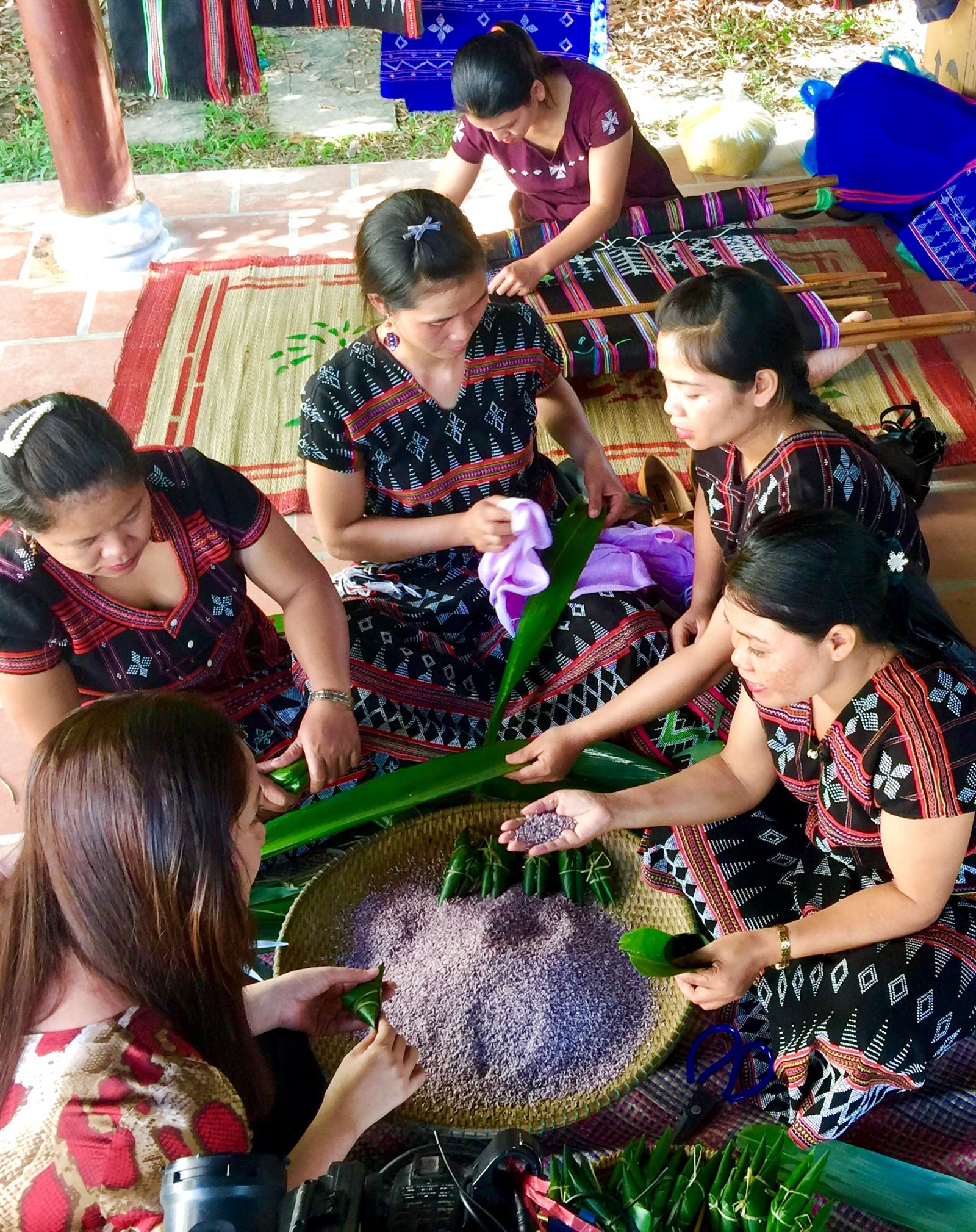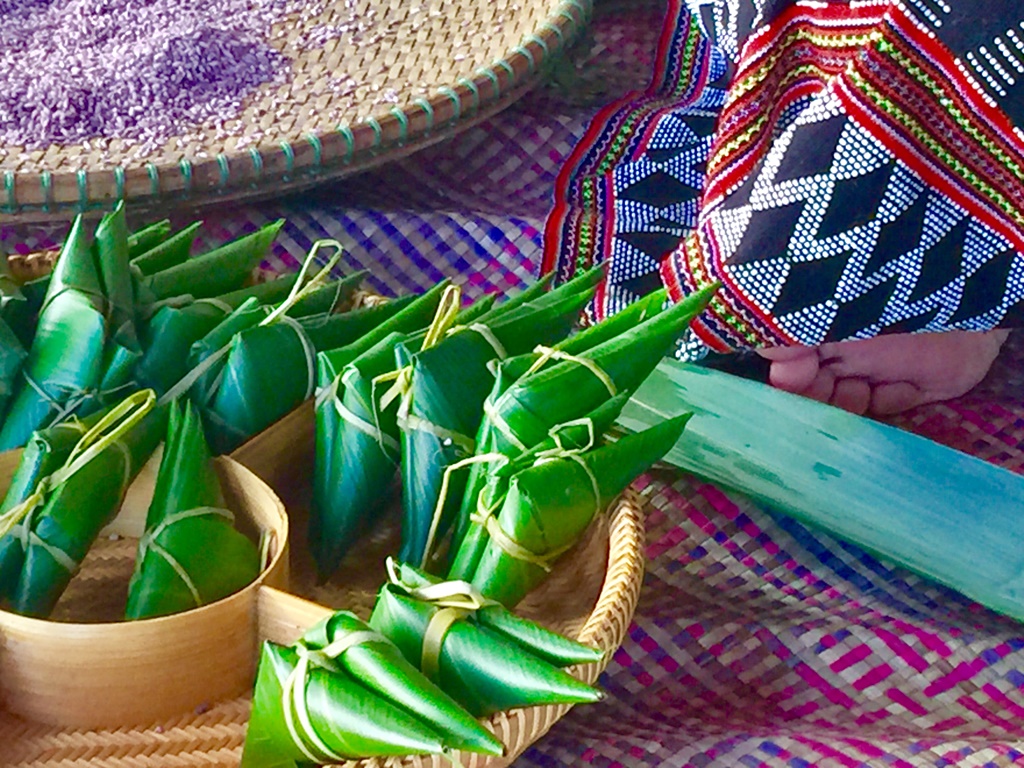 Hướng dẫn du khách gói bánh A Quát từ nếp than