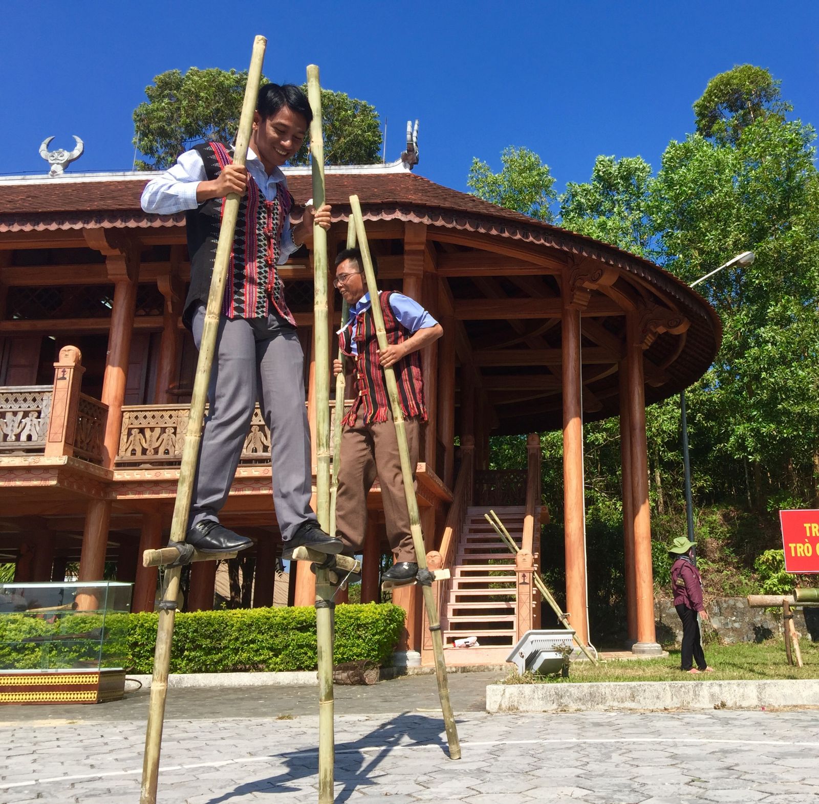 Song song với cảnh tấp nập kẻ bán người mua là các trò chơi dân gian như đi cà kheo...