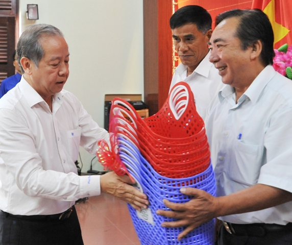 Chủ tịch UBND tỉnh tặng làn nhựa thay thế túi ni lông sử dụng 1 lần cho các địa phương, đơn vị tại buổi sơ kết