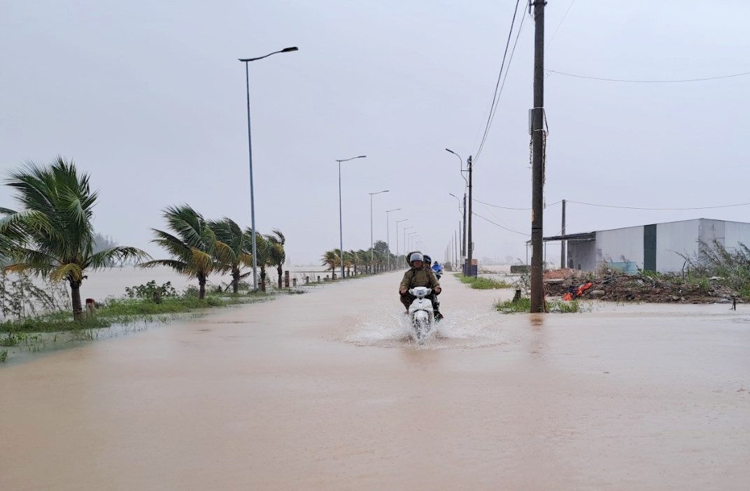 Tương tự, ở xã Thủy Tân, chiều 19/10, nhiều tuyến đường trên địa bàn toàn xã nước đã lênh láng, trong đó, nơi ngập sâu nhất là khu vực thôn Hòa Phong khi nước đang ở mức 0,3m – 0,4m.