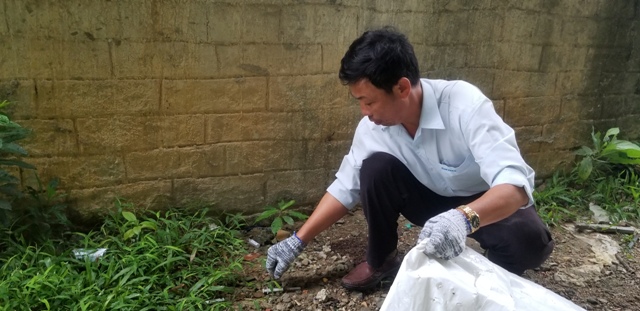 Nhặt rác và kim tiêm dưới chân cầu Dã Viên