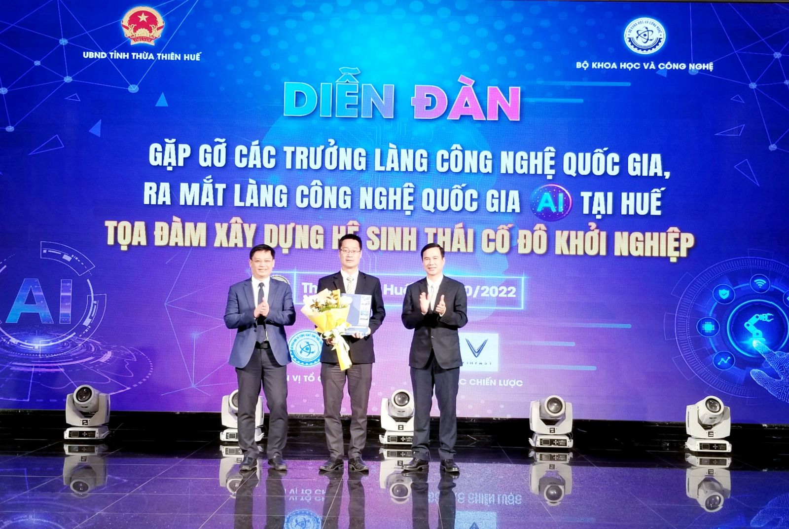 Lãnh đạo Bộ KH&CN, UBND tỉnh tặng hoa chúc mừng ra mắt Làng Công nghệ quốc gia AI tại Huế