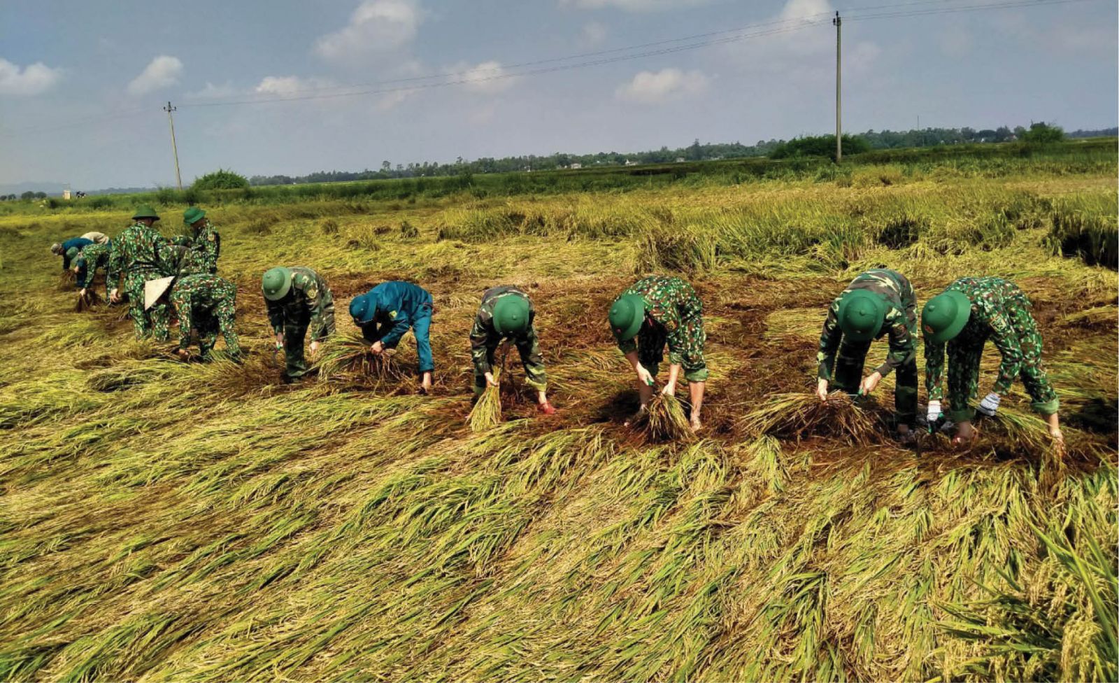 Ban Chỉ huy Quân sự huyện Phú Vang đã tham mưu cho huyện, đồng thời huy động cán bộ chiến sĩ đơn vị, phối hợp lực lượng dân quân, cán bộ các ban ngành đoàn thể tổng cộng hơn 100 người, giúp nông dân trên địa bàn thu hoạch lúa đối với những cánh đồng lầy máy gặt không hoạt động được.