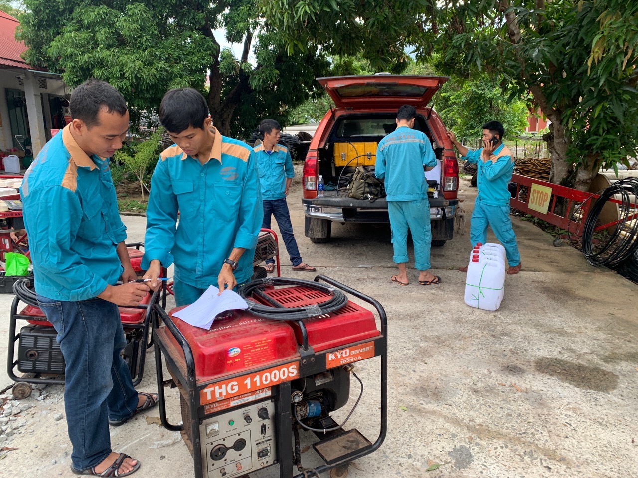 Nhân viên kỹ thuật của Viettel đưa máy phát điện về ứng cứu tại các trạm phát sóng