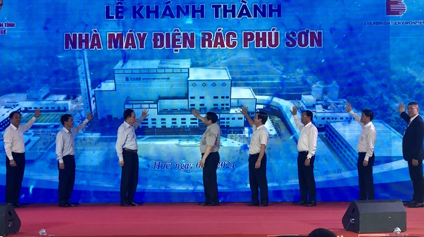| Thủ tướng Chính phủ Phạm Minh Chính và lãnh đạo các bộ ngành, địa phương thực hiện nghi thức khánh thành Nhà máy Điện rác Phú Sơn |