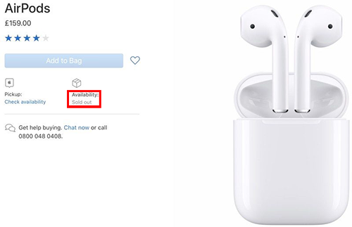 Chưa rõ nguyên nhân thiếu hàng hàng loạt này. Trích nguồn tin từ một nhà bán lẻ tại Pháp, Watch Generation cho biết các lô hàng tai nghe của Apple đã bán hết và đang đợi phiên bản thứ hai ra mắt.