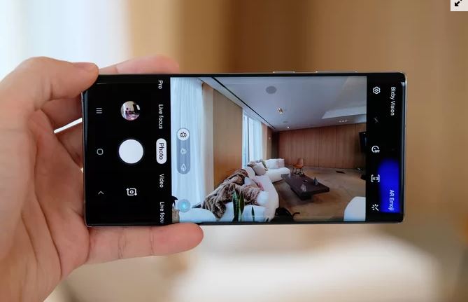 Sản phẩm vẫn có camera với ba tiêu cự góc rộng (12 megapixel), góc siêu rộng (16 megapixel) và tele 2x (12 megapixel). Samsung tập trung mạnh hơn vào tính năng video trên Galaxy Note10 khi bổ sung thêm chế độ xoá phông Live Focus Video, zoom âm thanh và công cụ biên tập video nhanh.