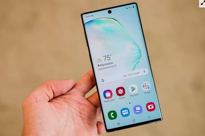 Công nghệ màn hình mới được Samsung gọi tên là Infinity-O với camera selfie đục lỗ được đặt ở chính giữa. Khi xem ảnh hay video, phần khuyết này không thu hút chú ý và chiếm nhiều diện tích hiển thị. Cạnh phía trên màn hình của Galaxy Note10 không còn loa thoại truyền thống mà được đặt ẩn bên dưới màn hình.