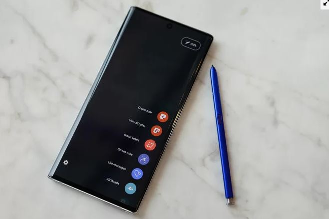 Bút S Pen trên Galaxy Note10 vẫn giữ lại phím bấm ở thân và nút nhấn ở trên đỉnh. Với kết nối Bluetooth, bút S Pen trên Note10 có thể dùng để chụp ảnh và có thêm các thao tác điều khiển bằng cử chỉ từ xa, không cần chạm màn hình.