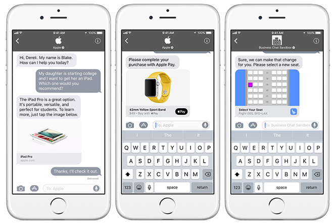 Theo TechCrunch, Business Chat sẽ là một phần của iOS 11, cho phép các cá nhân mở một cửa sổ iMessage từ Safari, Maps, Spotlight hoặc Siri và bắt đầu cuộc trò chuyện với doanh nghiệp. Cuộc trò chuyện bao gồm trình nhắn tin cơ bản nhưng Apple cung cấp thêm khả năng tương tác phức tạp hơn, chẳng hạn như lập cuộc hẹn.