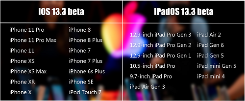 Danh sách các thiết bị tương thích với iOS 13.3 và iPadOS 13.3.