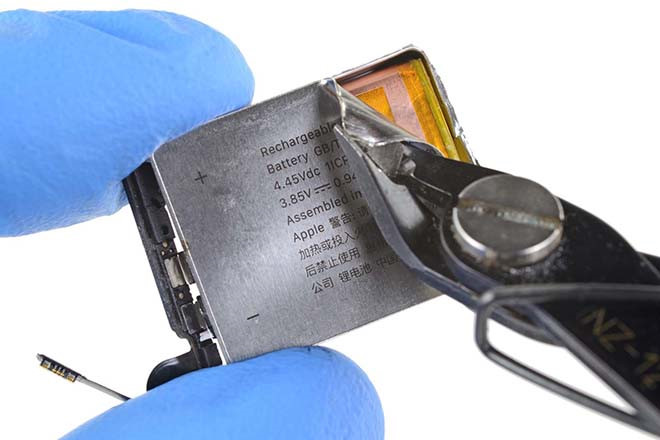 Theo Engadget, điều này được ghi nhận bởi iFixit sau màn “mổ bụng” chiếc đồng hồ mới nhất từ Apple, cho thấy phiên bản nhỏ hơn sử dụng pin được bọc trong vỏ kim loại thay vì vỏ giấy bạc màu đen như pin lithium-ion thông thường. Còn đối với bản 44 m lớn hơn, nó vẫn giữ pin tiêu chuẩn.