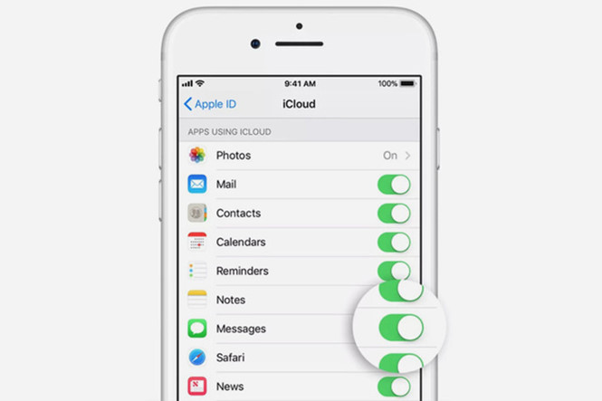 - Với iPhone hoặc iPad: Truy cập Settings > Apple ID > iCloud và sau đó chuyển nút Messages sang trạng thái bật. Để bảo vệ an toàn, bạn phải bật xác thực hai yếu tố trên nó. Nếu không hãy bật Messages in iCloud sẽ hiển thị một trang để bạn thiết lập. Dĩ nhiên bạn phải đảm bảo thiết bị của mình đang chạy iOS 11.4.