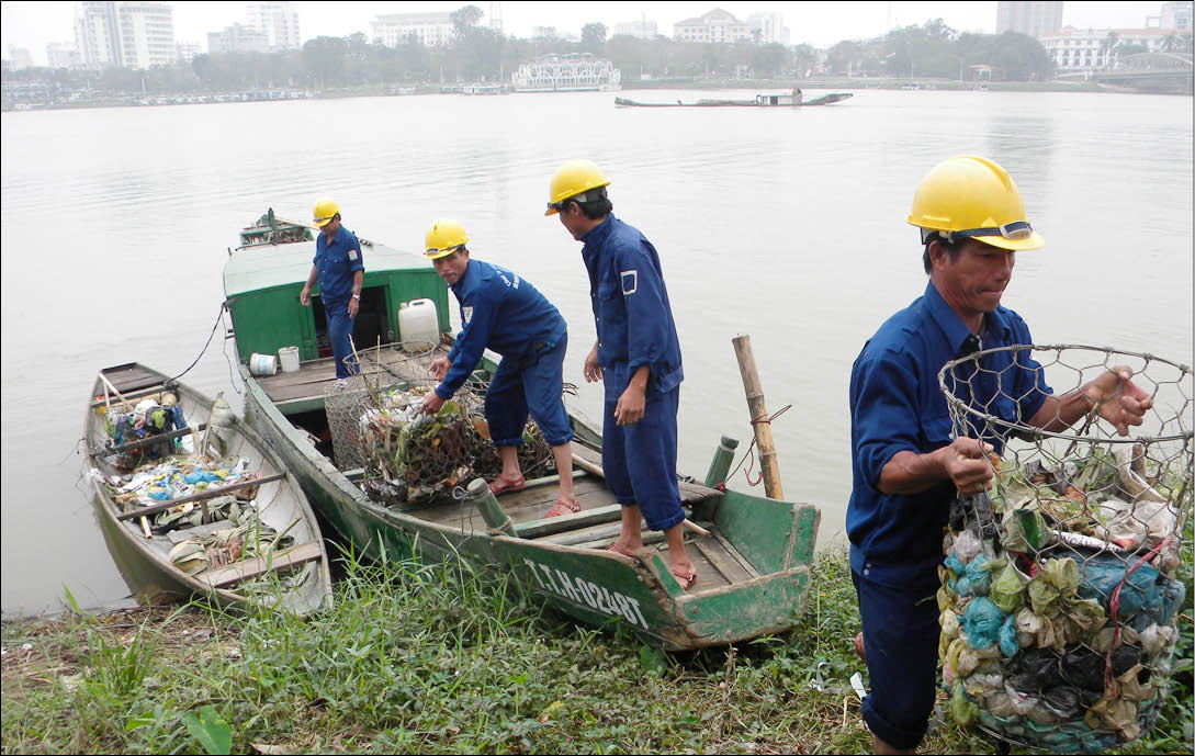 Để xử lý lượng rác này, Công ty TNHH NNMTV Môi trường và Công trình đô thị Huế phải thành lập một tổ chuyên thu gom, vớt rác trên sông. Hàng ngày, người và phương tiện chuyên vớt rác trên sông của công ty phải chạy dọc các đoạn sông từ bến Bao Vinh, Phú Bình lên bến Đông Ba để vớt một lượng rác rất lớn, vừa rác chợ, vừa là rác thải sinh hoạt của người dân thải xuống. Tuyến khác chạy dọc sông An Cựu, đoạn từ cầu Ga, qua chợ Bến Ngự xuôi về chợ An Cựu để vớt rác, làm sạch hai bên bờ và lòng sông. Theo những công nhân chuyên vớt rác trên sông, công việc thu gom rác trên sông khó nhọc và tốn kém kinh phí hơn gấp đôi, gấp ba so với trên cạn.