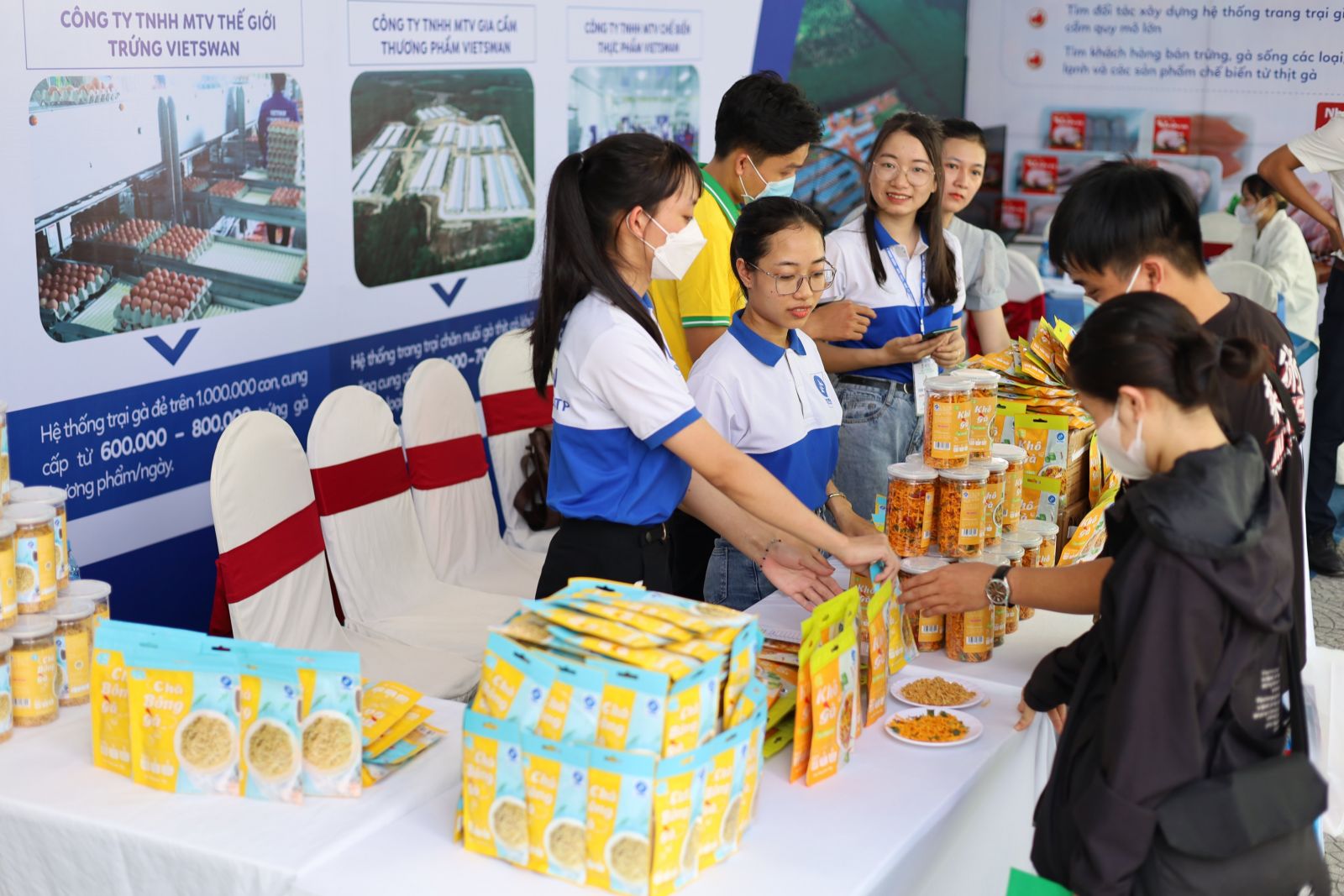 Đông đảo đại biểu, sinh viên tham quan các gian hàng trưng bày tại hội nghị