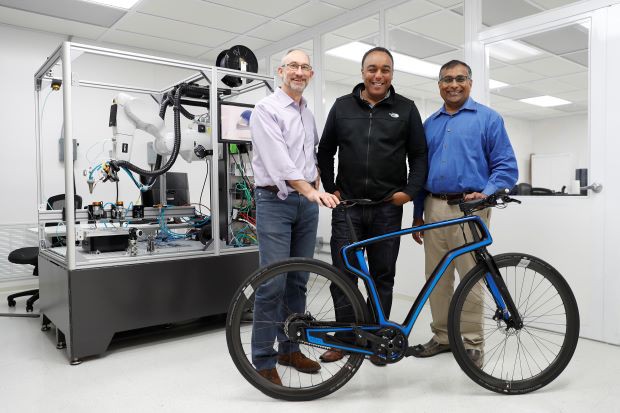 Arevo Inc, một công ty start-up với sự ủng hộ từ nhánh đầu tư mạo hiểm của Cơ quan Tình báo Trung ương Mỹ, đã nghiên cứu sản xuất chiếc xe đạp bằng sợi carbon có khung được sản xuất bằng in 3D đầu tiên trên thế giới.