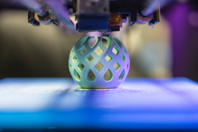 Một máy in 3D đang tạo ra một quả bóng nhựa - Ảnh: BLOOMBERG