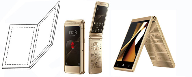 Từ trái qua: Mẫu thiết kế của Apple, Samsung W2017 và Freetel Musashi