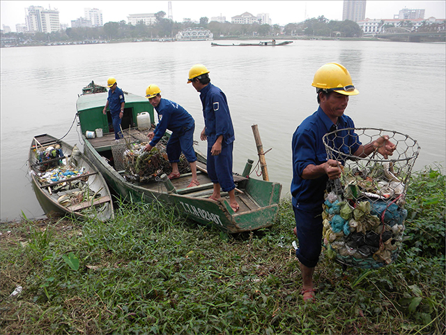 Trong khi đó, phạm vi vớt rác của Công ty MTĐT không thể quán xuyến được hết bề rộng mặt sông và các địa phương khác không tổ chức vớt rác thường xuyên trên các đoạn sông chảy qua địa bàn, nên ngoài một số bị mắc kẹt dọc các cầu cống, lượng lớn khác trôi dạt về đầm phá, ra biển.