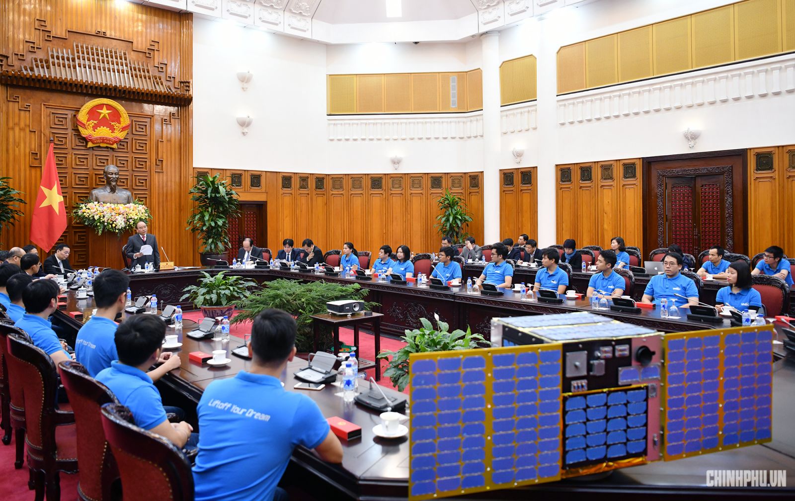 Ghi nhận các ý kiến tại cuộc gặp mặt, Thủ tướng khẳng định, Chính phủ sẽ tiếp tục tạo mọi điều kiện thuận lợi nhất để nuôi dưỡng và duy trì ngọn lửa đam mê, khát vọng nghiên cứu, sáng tạo và cống hiến của các nhà khoa học công nghệ vệ tinh trẻ để chúng ta có bước phát triển mới tốt hơn nữa trong công nghệ vũ trụ của Việt Nam. Thủ tướng cho biết, sẽ có chương trình, chính sách phát triển công nghệ vũ trụ, một lĩnh vực mới mẻ, non trẻ của Việt Nam, đặc biệt là đào tạo cán bộ.