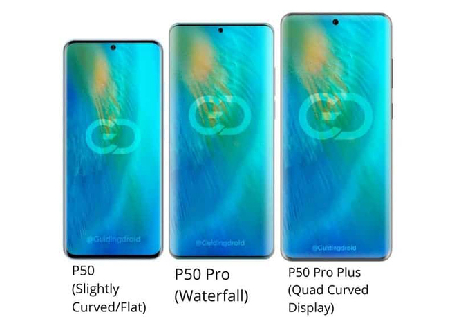 Theo Gizchina, Huawei P50 sẽ có màn hình cong hai bên viền tương tự như Galaxy S20 của Samsung. P50 Pro sẽ tiếp tục sử dụng màn hình "thác nước" tương tự thế hệ trước. Riêng P50 Pro Plus có thiết kế đột phá nhất khi được trang bị màn hình viền mỏng và cong cả bốn cạnh.