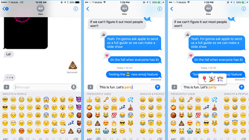 Nếu nhấn và giữ vào một tin nhắn, bạn có thể trả lời lại nó với nút nhỏ như trái tim hoặc dấu chấm than. Trong phiên bản cuối cùng của iOS 10, bạn có thể thêm nhãn bên thứ ba và ảnh động vào iMessage.