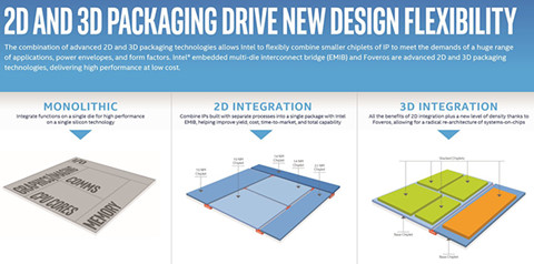Theo Engadget, việc nhồi nhét các bóng bán dẫn cạnh nhau đang ngày càng trở nên khó khăn hơn, đó là vì luật Moore đang tiến dần đến giai đoạn cuối. Tuy nhiên, mọi thứ sẽ được giải quyết dựa trên kiến trúc thiết kế chip 3D, nơi các chip logic gồm những thứ như CPU và GPU được xếp chồng lên nhau, mà Intel đang hướng đến với tên gọi Foverus.