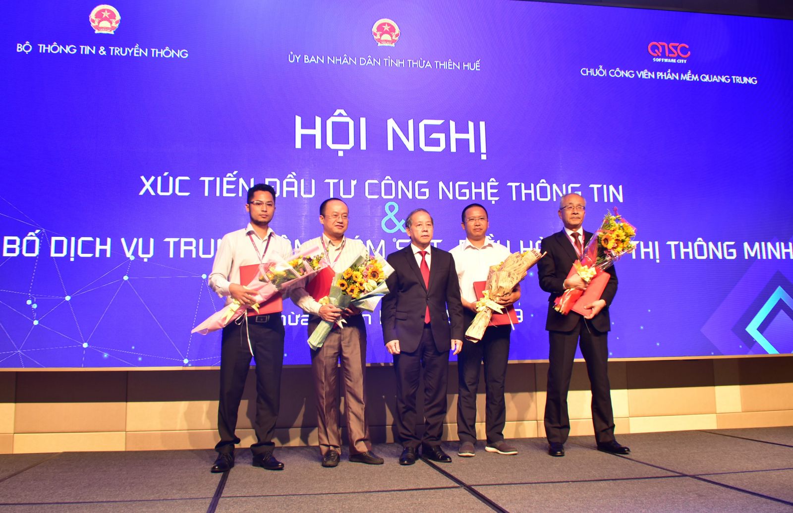 Tại hội nghị, Chủ tịch UBND tỉnh Phan Ngọc Thọ đã trao giấy chứng nhận đầu tư cho 4 DN trên lĩnh vực CNTT đầu tư vào Thừa Thiên Huế.