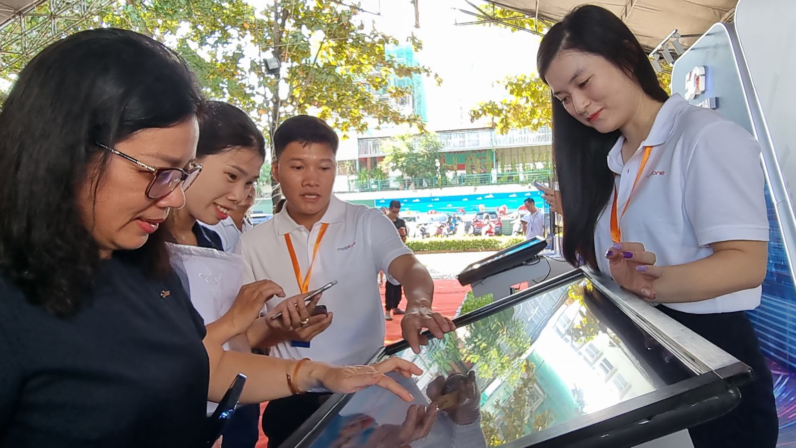 Du khách trải nghiệm các ứng dụng công nghệ số tại triển lãm trong khuôn khổ Tuần lễ Chuyển đổi số Huế 2022
