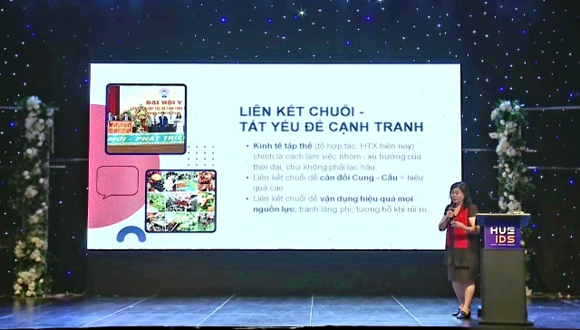 Bà Nguyễn Thị Thành Thực, Ủy viên Ban chấp hành Nông nghiệp số Việt Nam trình bày về chủ đề nông nghiệp hữu cơ