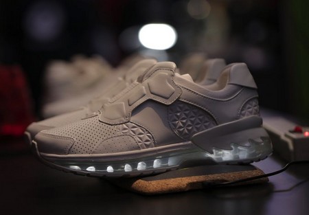 Đế giày được in bằng 3D và được tích hợp dải đèn LED trang trí. Người dùng có thể sạc pin cho đôi giày thông mình này bằng cách đeo thêm một đế sạc pin vào giày.