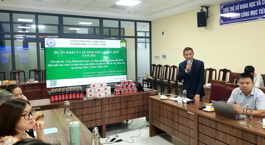 Qua hơn 2 năm thực hiện, dự án đã hoàn thành toàn bộ các nội dung và đạt được đầy đủ các sản phẩm theo hợp đồng. Trong đó đã hoàn thiện quy trình công nghệ, quy trình kỹ thuật về sản xuất giống và kỹ thuật trồng, chăm sóc, thu hoạch cây atiso đỏ theo tiêu chuẩn VietGAP. Hoàn thành được 4 quy trình kỹ thuật về chế biến, bảo quản và tiêu thụ từ cây atiso đỏ đảm bảo các yếu tố kỹ thuật, hiệu quả kinh tế mở rộng sản xuất; xây dựng mô hình sản xuất, chế biến; mô hình trồng, chăm sóc cây atiso đỏ đạt tiêu chuẩn VietGAP với quy mô 5 ha tại Phong Điền.