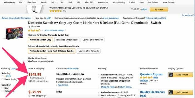 Mẫu máy game giá 299 USD của Nintendo đã cháy hàng tại Amazon, Best Buy, Target tới Walmart, GameStop, Ben Gilbert. Để mua được sản phẩm này, người dùng chỉ còn cách mua lại hoặc tìm kiếm các sản phẩm cũ trên một số trang thương mại điện tử. Tuy nhiên, số tiền bỏ ra là 500 USD, đắt gấp đôi giá niêm yết.