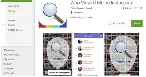 Theo hãng bảo mật Trend Micro, InstaCare là ứng dụng có phiên bản chạy trên Android và iOS, được quảng cáo là có thể cho bạn thấy bao nhiêu người đã xem tài khoản của bạn và những người xem đó chính xác là ai.