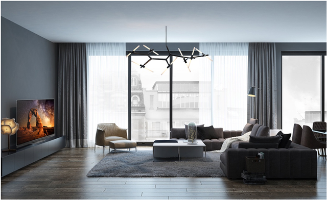 Một chiếc TV siêu mỏng, kết nối không dây với các dải loa(soundbar) thanh mảnh sẽ mang đến một không gian gọn gàng và thanh lịch cho các phòng khách mở.